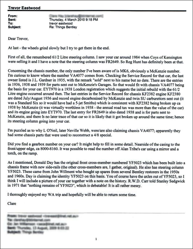 VintageBentleys.org: We had initially attributed this red car to being chassis no. VA4077. Upon requesting clarification from EYT 970 owner Trevor Eastwood he shared a copy of the 2005 invoice for his car and also a 2010 email from Clare Hay on this matter. - Sep 15, 2016