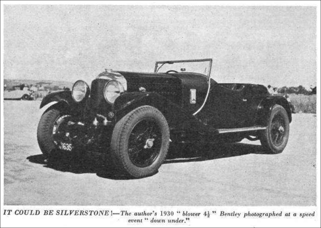 "In 1946 I was in Sydney, keeping my eyes open for a faster vintage machine, approaching, amongst others, John Crouch, Sydney's leading dealer in interesting cars. He had, at that time, as his personal car, a superb supercharged 4½-litre Bentley, fitted with a very pretty 2/3-seater fabric body, and was achieving a number of successes in competitions with this car. I didn't imagine for a moment that he would sell it, or that I could possibly afford it if he did, but after much discussion he finally offered it to me at a price which, though high, I could just manage. So to my great joy this magnificent car became mine, both the Lambda and the original 14/40 being rapidly disposed of to meet the cost.