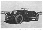 It handled on loose or firm surfaces like a small car, and would, in feet, walk away from many a good car on sheer handling alone. The weight of 37 cwt. bluffed the brakes at times, and ruled against the car for sprints and hill-climbs, but I found it a useful trials car, since its great performance made it possible to pick up time and keep to schedule where a lesser car would have to resign itself to being late. (Our Australian trials are mostly in the "Road-race-in-all-but-name" class -- though not always intentionally.) The enormous fuel bill, coupled with the necessity for travelling 40 miles to work and back each day, forced me to part with the "blower," but with the greatest possible regret. I have mourned the passing of that car more than any other I've had." |