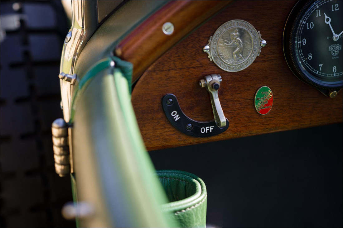 The windscreen, aero screens all the minor trim details are produced by James Pearce i.e. fold flat screen and aeros fit to the side when screen and hood is up. These include all correct original instrumentation headlight stone guards, prewar Marechal headlights and Marechal Spotlight, full instrumentation, right angle drive Klaxon and one Klaxonette fitted to the running board.